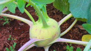 野菜&果物Kohlrabi cultivation report 茎の根元が肥大して、緑色のキャベツに似た味の、芋のような食感の、独特の実が収穫できるという珍しい植物・コールラビのウィークリー栽培レポート。独特の成長過程が楽しい。野菜&果物