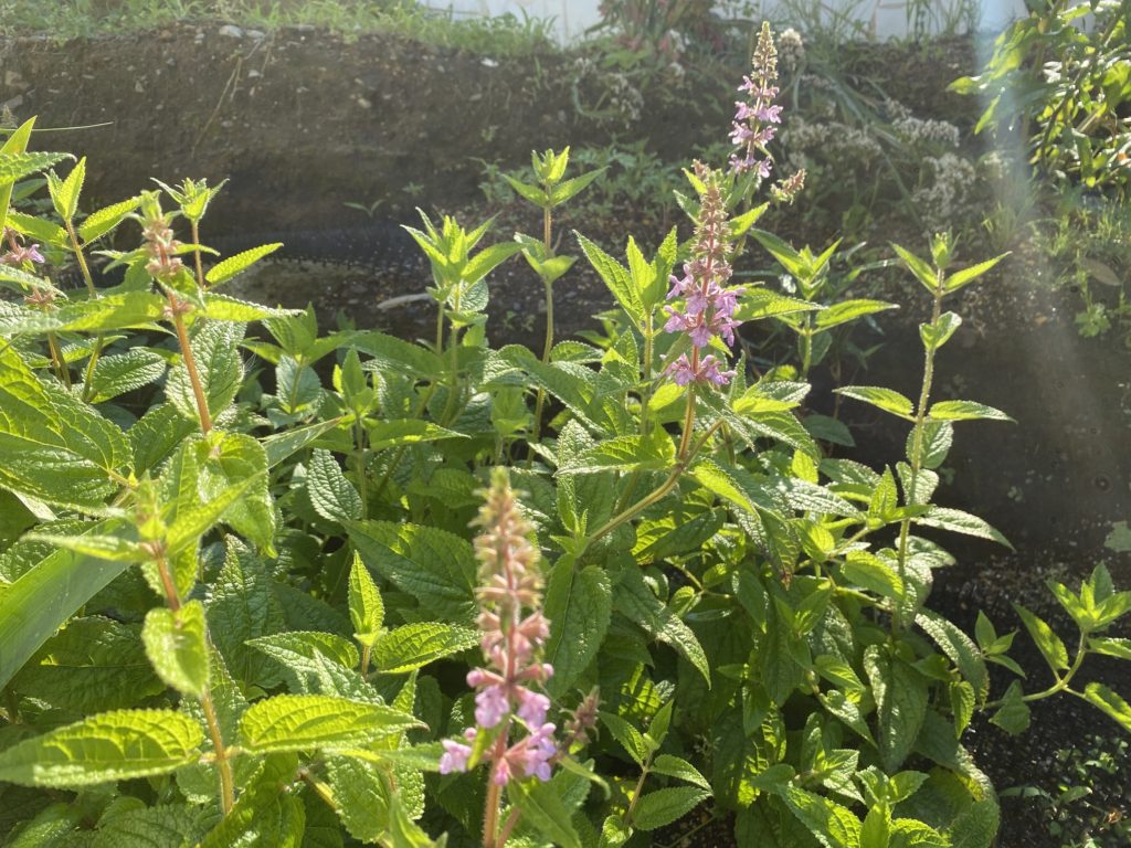 ロッティ葉が茂り、森のようになったチョロギ。ときおり花茎が出て花が咲きますが基本的に夏のあいだは大きな変化はなくなります